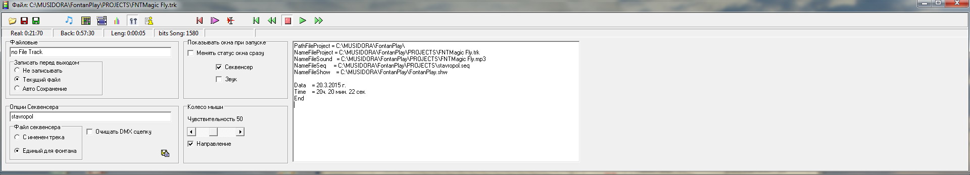 Быстрое освоение, основные функции, чтобы начать писать синхротреки для танцующих светомузыкальных фонтанов.