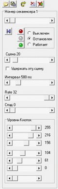 - Секвенсерные поля для установки RGB прожекторов, клапанов, частотных регуляторов